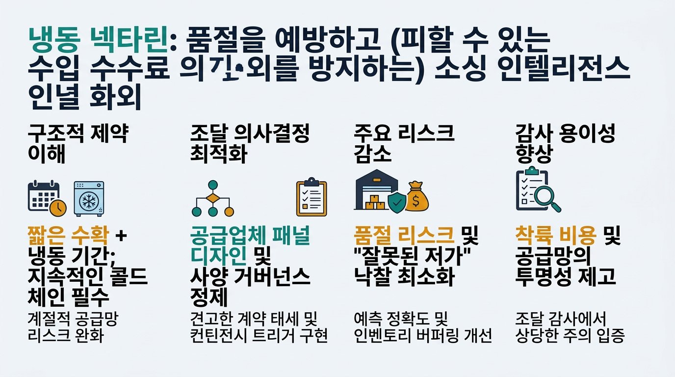 중요한 구조적 사실: 냉동 천도복숭아는 수확 + 가공 배정 구조로 움직입니다. 급속냉동 윈도우에서 커버리지를 놓치면, 나중에 단지 더 비싸지는 것을 넘어 다음과 같은 상황으로 몰릴 수 있습니다:
